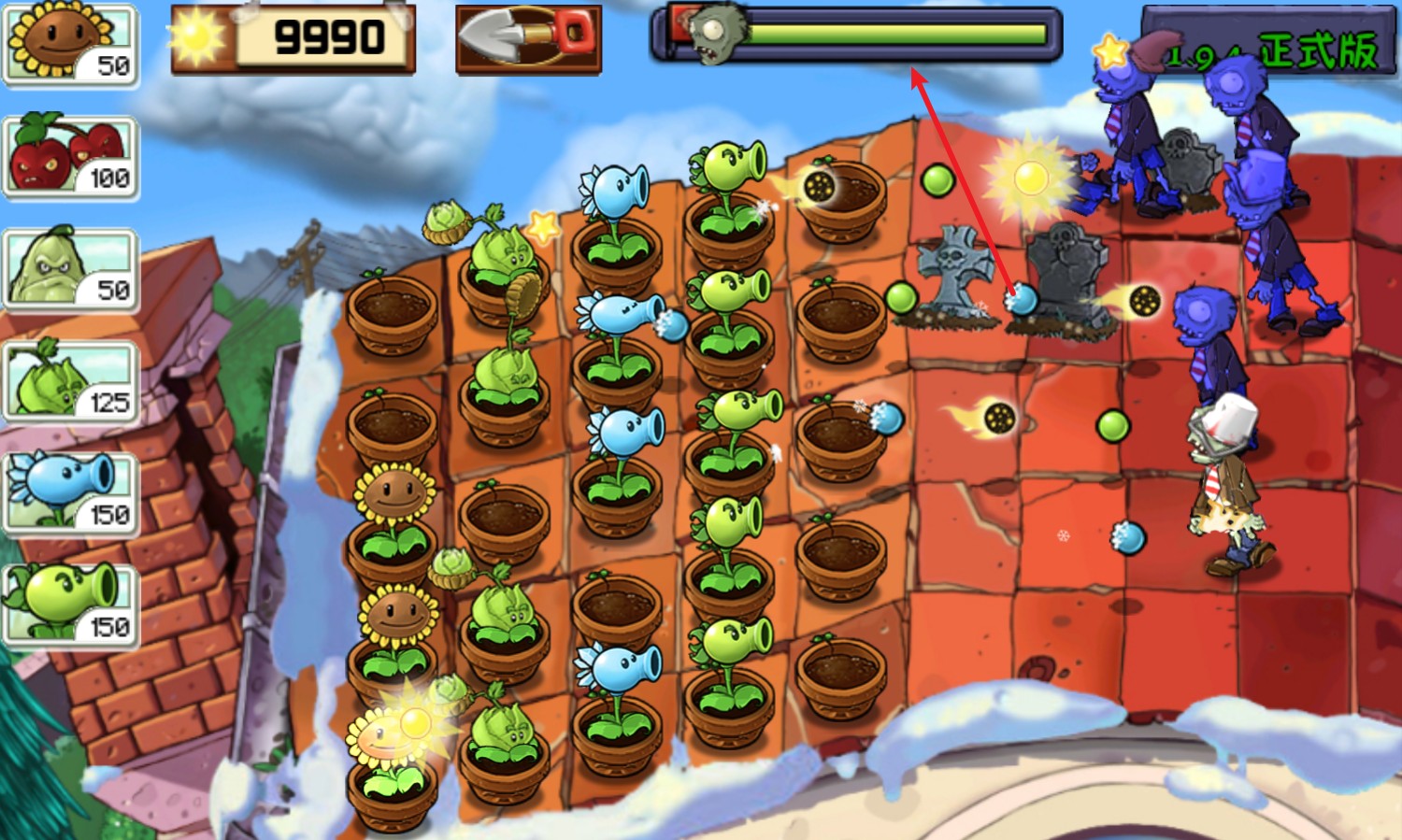4、屏幕上方显示僵尸进攻的进度。