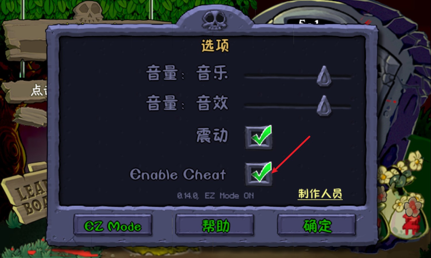 2、在菜单中选择启用作弊功能(enable cheat)。